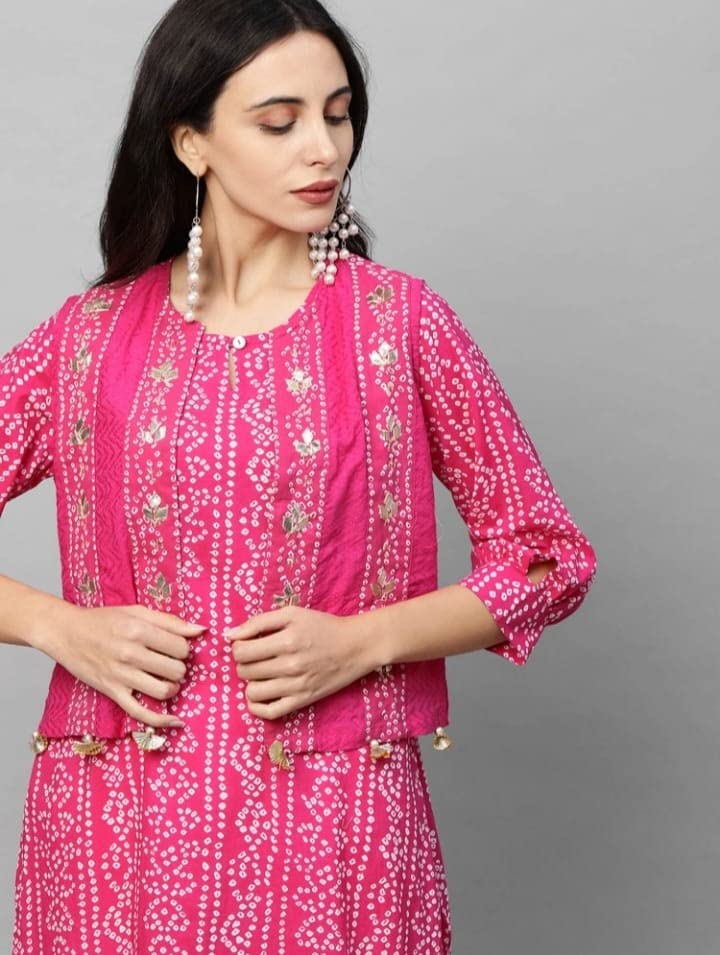 Buy Trends N Style Women Ethnic Jacket Kurta And Pant Set Fabric Heavy Rayon Pink White Size M L Xl Xxl M Pink At Amazon In